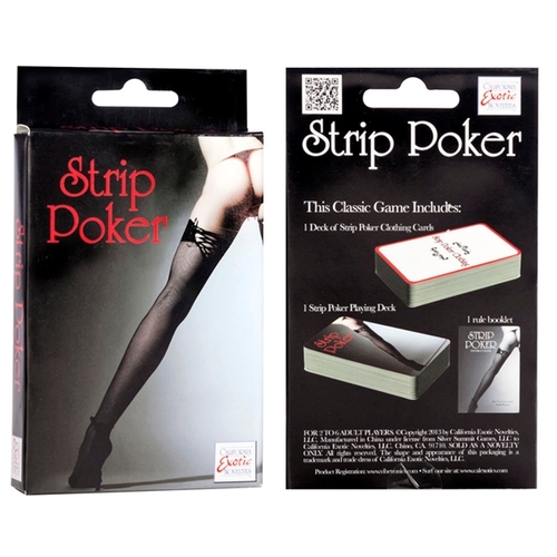 - Includes: 1 deck of Strip Poker cards, 1 deck Strip Poker clothing cards, rule booklet